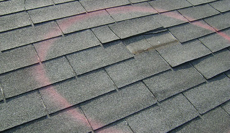 Because hail damage is particularly difficult for the untrained eye to detect, many people discover major roofing damage years down the road. Often the window of opportunity to file a storm damage claim with their insurance company is lost. As such the Line of Sight Rule applies. Hail Damage to roof shingles are the most common wind and hail damage insurance claims.